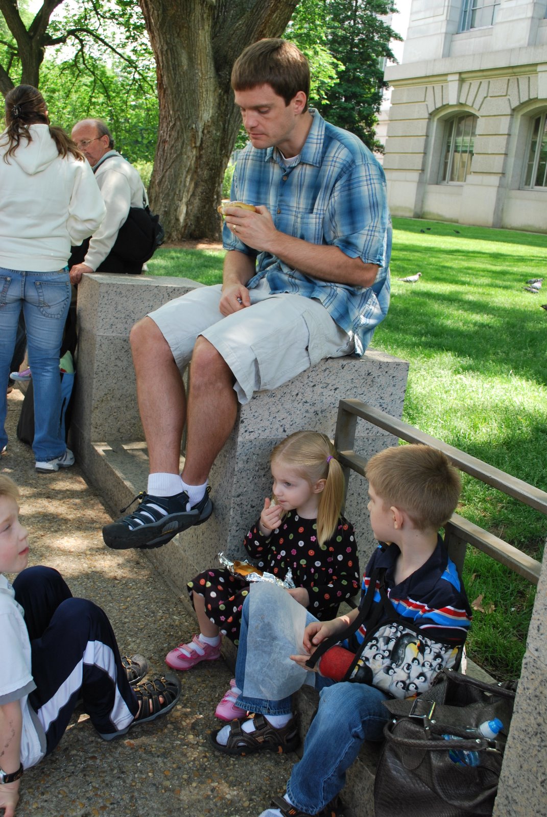 There are no pictures of the bike leg, since Meridith and the kids stayed back at the transition area waiting for me and watching all the other athletes go by. This is an example of how the kids spent their time while I was toiling away.